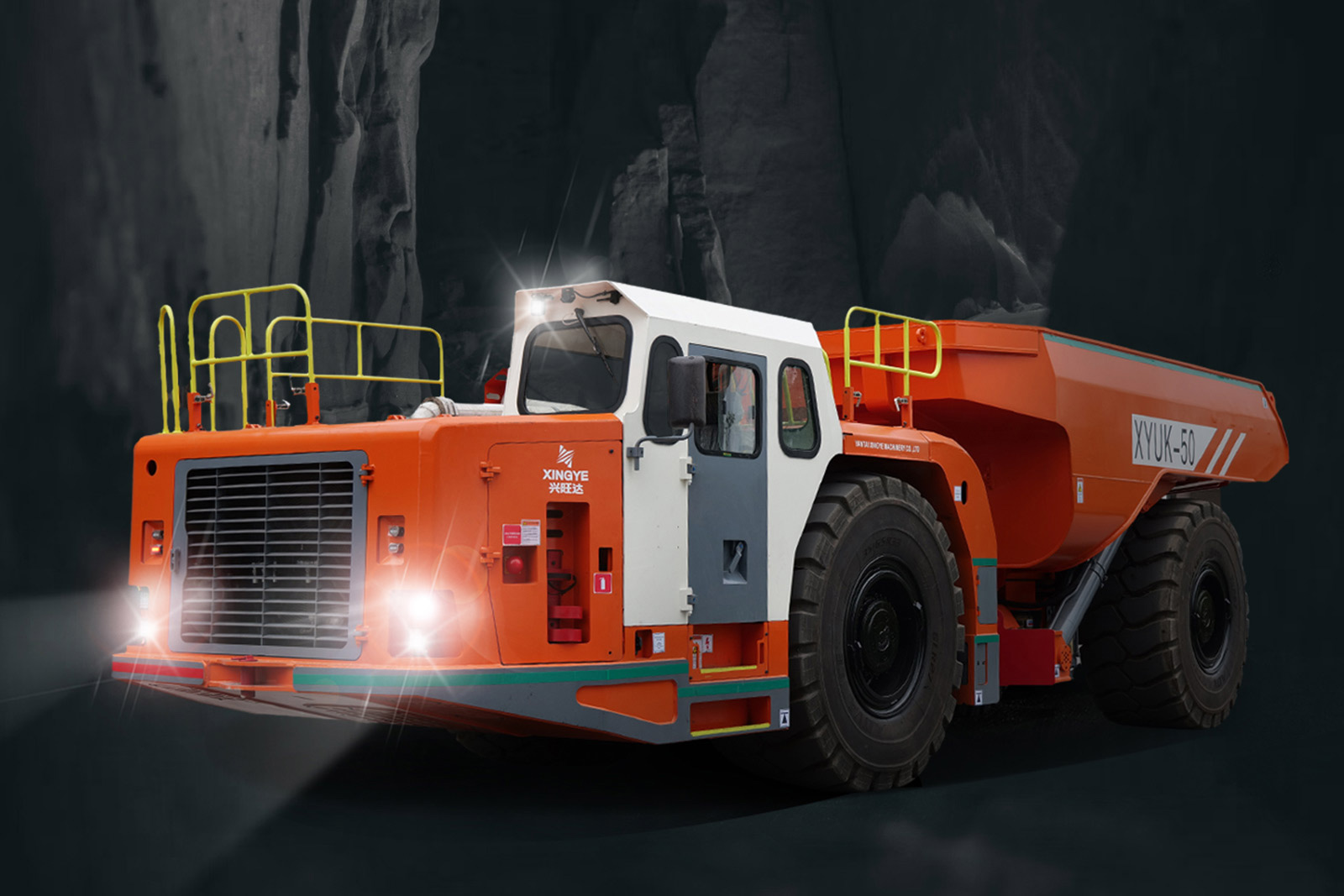 兴业机械运矿卡车具有结构紧凑,紧固耐用的特点,能够在井下恶劣环境下提供安全,高效、高速的长距离矿山运输。卡车都采用中央铰接回转支承结构,转弯半径小实现高机动性,可时刻保证设备四轮驱动,增大牵引力。 可选装不同品牌的国际国际知名品牌低排放、功率强大的柴油发动机,包括先进的国V和StageV阶段发动机,保证设备持续的高性能和燃油效率。所有兴业机械运矿卡车都能够在坡度高达25%的长距离螺旋运输坡道上满载高速运输作业,并带有辅助制动功能,保证设备坡道行驶的安全性和可靠性。