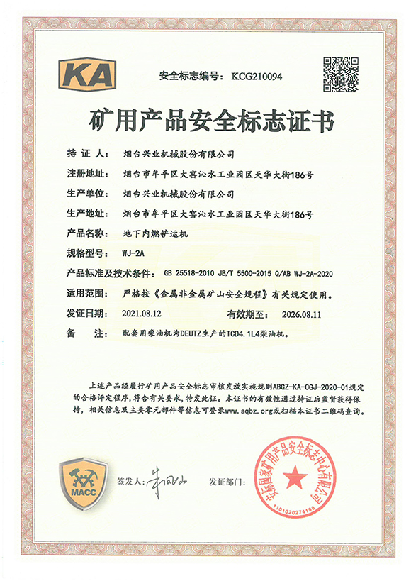 山东省质量评价协会公布了2021年度山东优质品牌产品认定结果,烟台兴业机械股份有限公司产品“地下铲运机”荣获“2021年度山东优质品牌”。